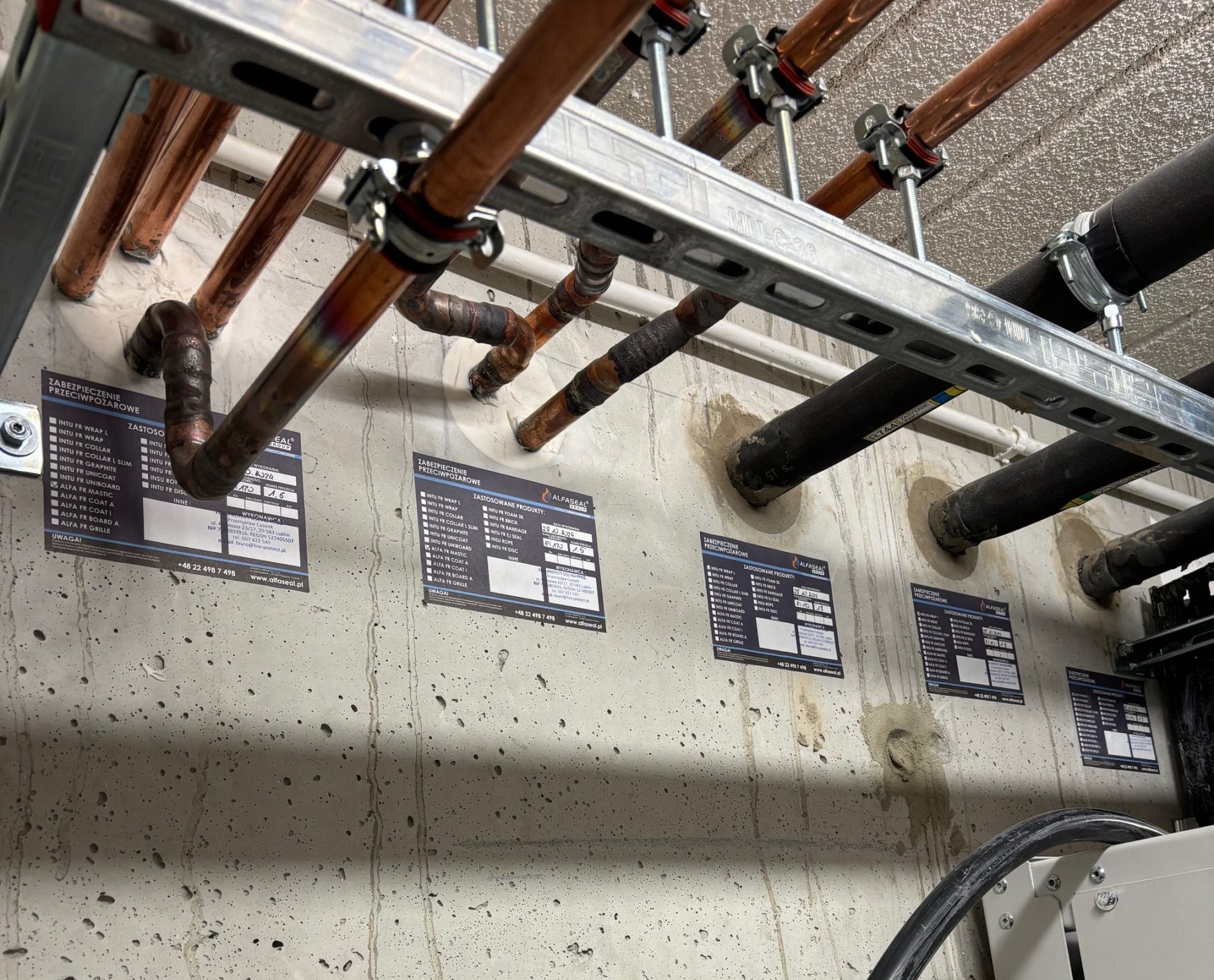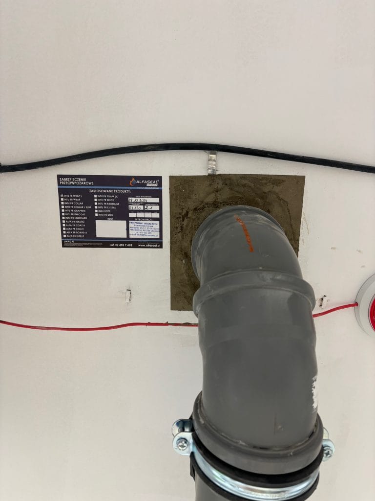 - Płyty ogniochronne – stosowane w przypadku większych otworów, szczególnie przy przejściach wielu instalacji w jednym miejscu.